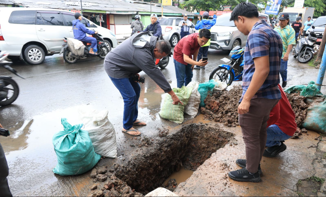 Wali Kota Bekasi, Tri Adhianto, menunjukkan kemarahannya saat meninjau proyek galian kabel optik di Jalan…