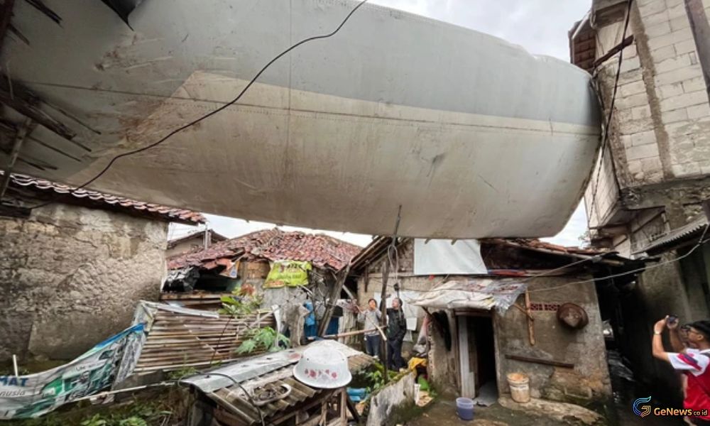 Warga Bogor Panik, Sayap Pesawat Timpa Rumah Usai Disapu Puting Beliung