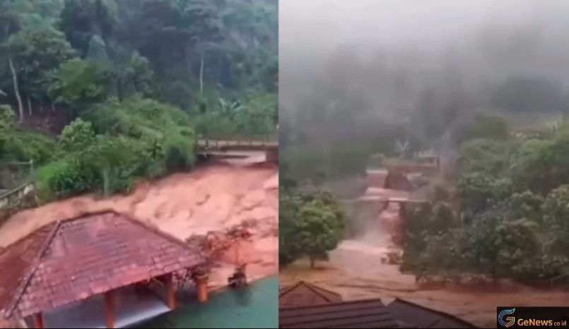 GeNews.co.id – Hujan deras yang turun sejak Kamis siang, 4 Desember 2025. Hal ini memicu banjir bandang di Desa Mukapayung, Kecamatan Cililin, Kabupaten Bandung Barat. Banyak sejumlah fasilitas umum seperti area wisata, kolam budidaya ikan, serta lahan perkebunan dan persawahan ikut terendam setelah Sungai Cibitung meluap.