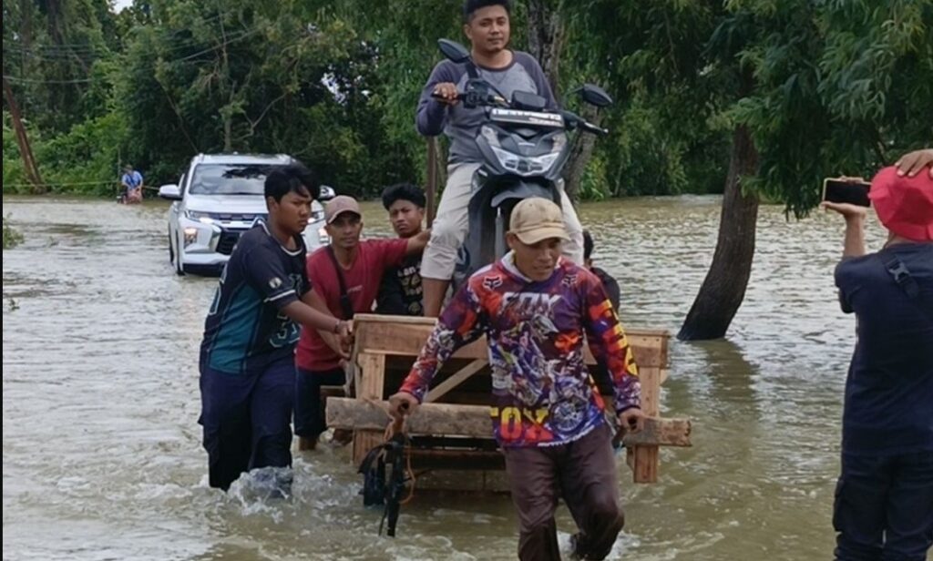 Banyak motor mogok saat nekat menerobos banjir. Sebagian warga memilih mencari jalur alternatif. Namun tidak semua jalan bisa dilalui. Situasi ini memunculkan solusi darurat di tengah masyarakat.