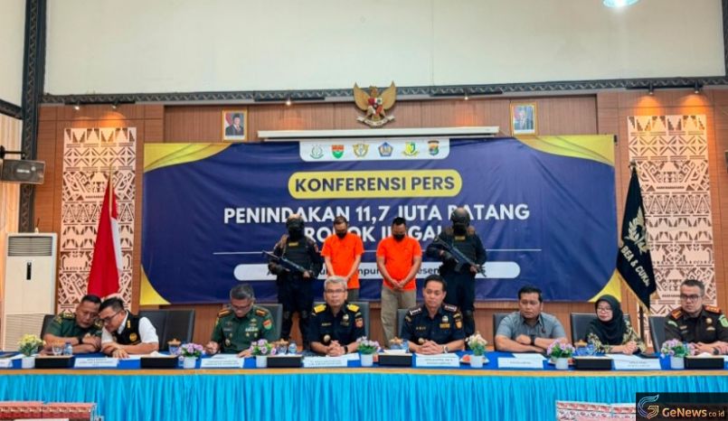 GeNews.co.id – Sinergi Bea Cukai Lampung, Kanwil DJBC Sumatera Bagian Barat, dan Polisi Militer Daerah Militer XXI/Radin Inten membuahkan hasil besar. Sepanjang November 2025, tim gabungan tersebut berhasil menggagalkan peredaran sekitar 11,7 juta batang rokok ilegal di Kabupaten Lampung Selatan. Penindakan diumumkan pada Selasa (9/12).