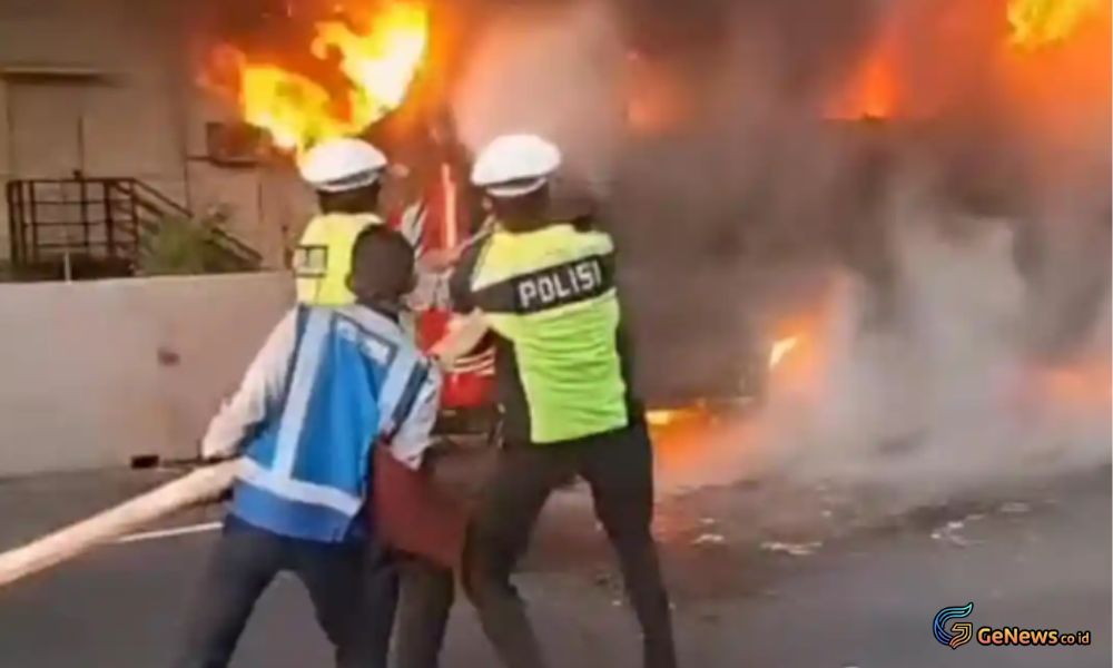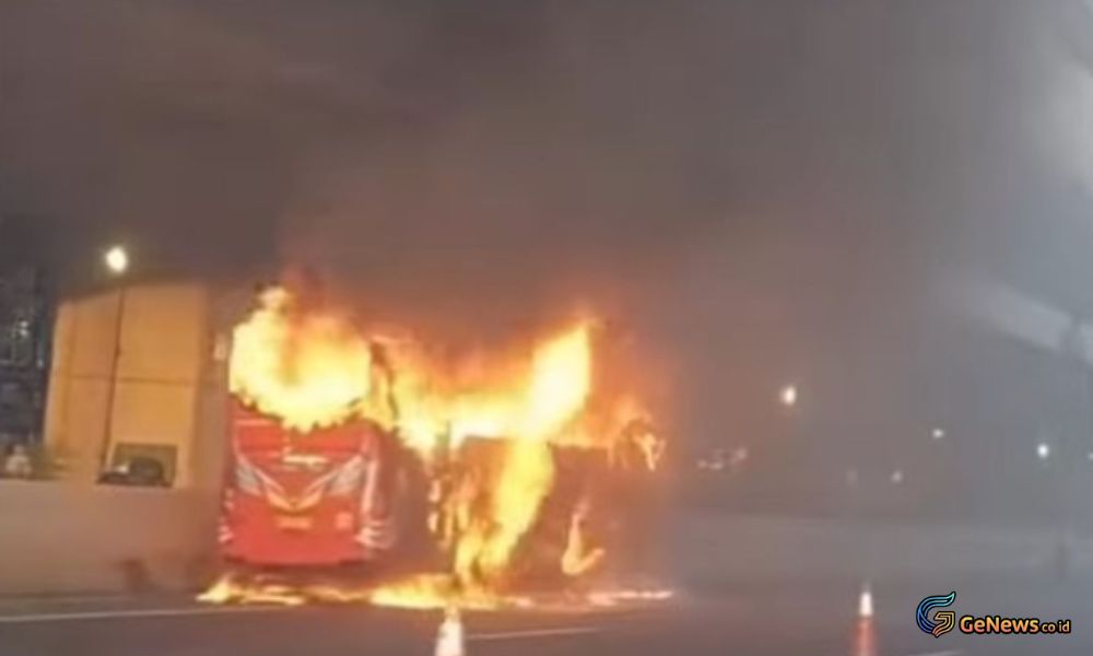 GeNews.co.id – Sebuah bus wisata dilaporkan terbakar saat melintas di ruas Tol Jakarta–Cikampek (Japek) KM 06A pada Senin 5 Desember 2026 sore. Seluruh penumpang yang berada di dalam bus, berjumlah 34 orang, berhasil diselamatkan tanpa mengalami luka. Peristiwa tersebut sempat direkam warga dan videonya beredar luas di berbagai platform media sosial.
