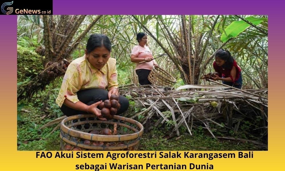 Genews.co.id – Indonesia mendapatkan sertifikat resmi dari Organisasi Pangan dan Pertanian Bangsa-bangsa (FAO). Sertifikat Sistem Warisan dan Pertanian Penting Global (Globally Important Agricultural Heritage System/GIAHS). Untuk pertama kalinya Indonesia mendapatkannya atas sistem agroforestri salak di Karangasem, Bali. Sertifikat ini akan diserahkan pada tanggal 1 November 2025, dalam acara seremonial yang akan diadakan di Italia. Hal ini menandakan sebuah tonggak bersejarah bagi Indonesia di bidang pertanian berkelanjutan.