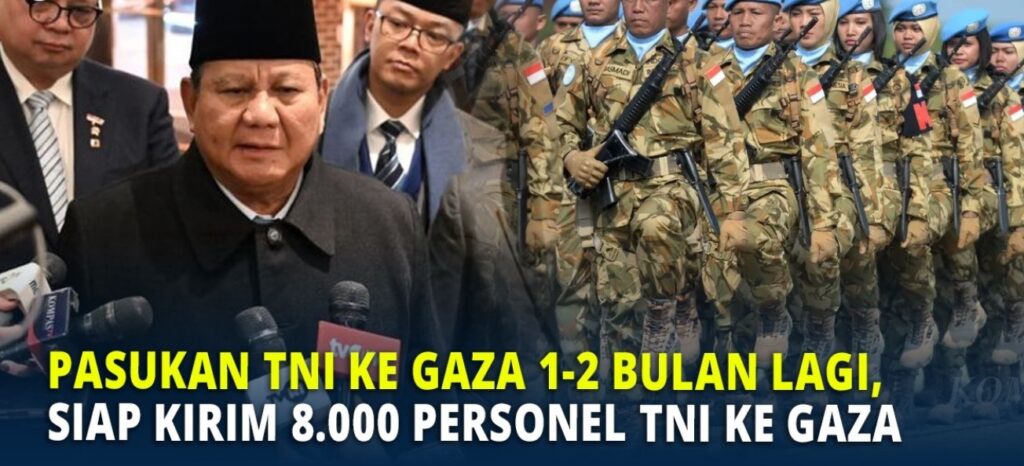 GeNews.co.id Indonesia secara resmi menyatakan kesiapan untuk mengirim 8.000 personel Tentara Nasional Indonesia (TNI) ke Jalur Gaza, Palestina dalam waktu 1–2 bulan ke depan. Pernyataan ini disampaikan oleh Presiden Prabowo Subianto setelah menghadiri Konferensi Tingkat Tinggi Board of Peace (BoP) Gaza di Washington DC, Amerika Serikat, pada 19 Februari 2026.