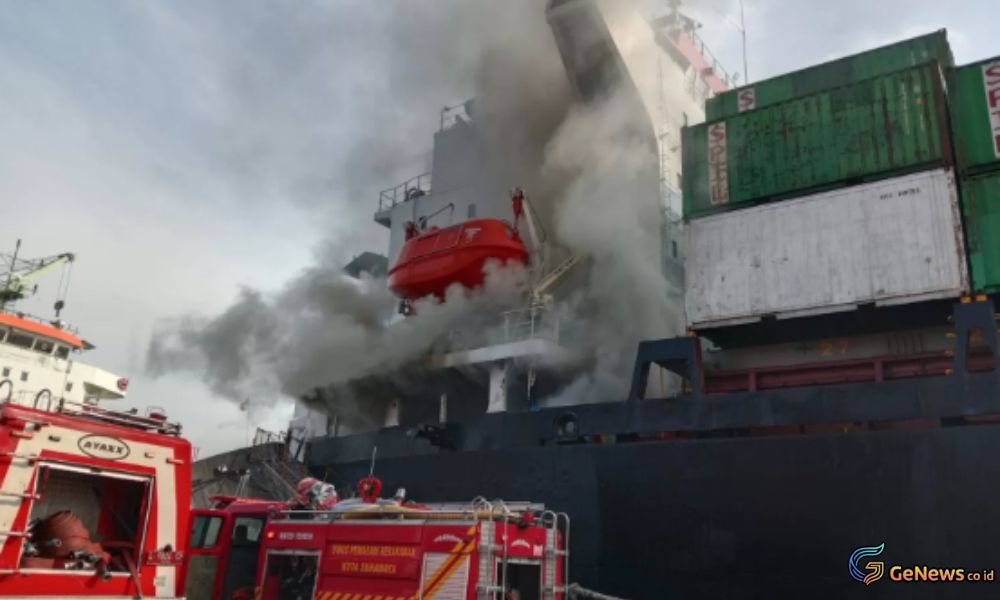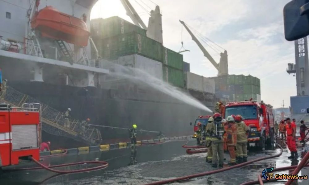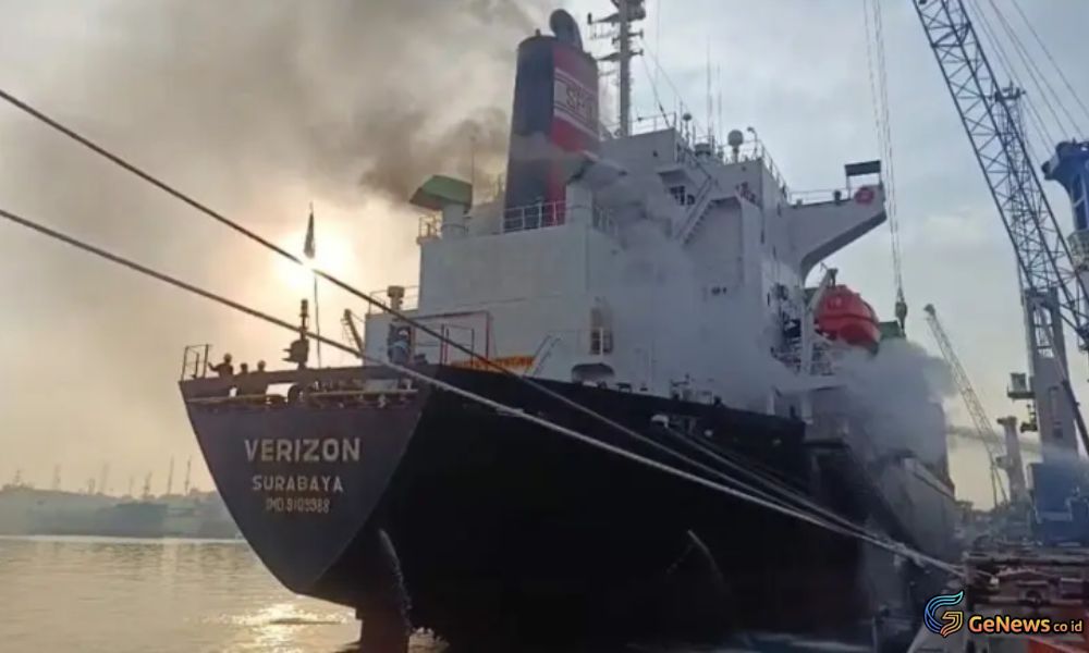 GeNews.co.id – Kebakaran terjadi di kapal kontainer Verizon yang tengah bersandar di Dermaga Berlian Timur, Pelabuhan Tanjung Perak, Surabaya, pada Senin (29/12/2025) dini hari. Insiden yang berlangsung sekitar pukul 05.00 WIB itu sempat menimbulkan kepanikan di area pelabuhan karena asap hitam tebal terlihat membumbung dari dalam kapal.