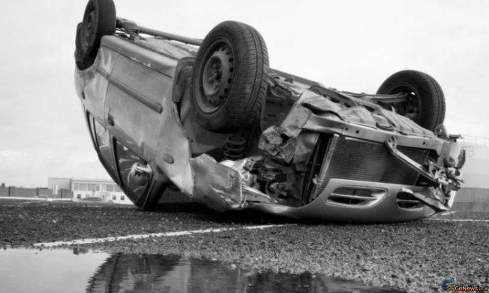 Benturan keras membuat mobil oleng, dan kemudian terbalik dengan posisi ban menghadap ke atas. Sejumlah bagian kendaraan, terutama di bagian depan dan bodi samping, mengalami kerusakan cukup parah akibat insiden tersebut.
