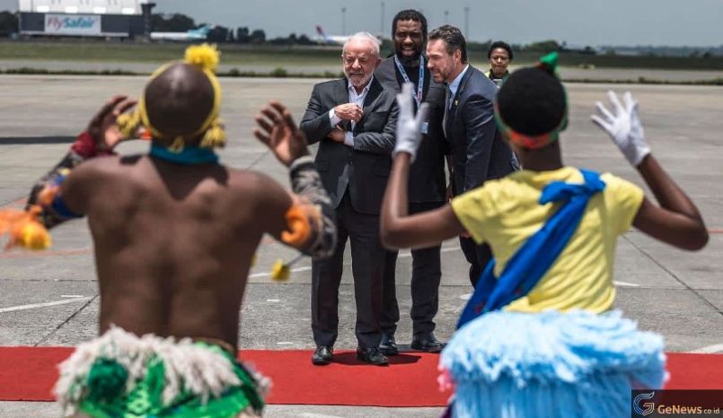 Genews.co.id – Presiden Brasil Luiz Inácio Lula da Silva menjadi presiden pertama yang mendarat di Afrika Selatan dalam rangka menghadiri KTT G20 di Afrika Selatan pada hari Jumat. Ia tiba di Bandara Internasional OR Tambo untuk disambut dengan secara seremonial militer saat Johannesburg bersiap menjadi tuan rumah pertemuan G20 pertama di negara Afrika.