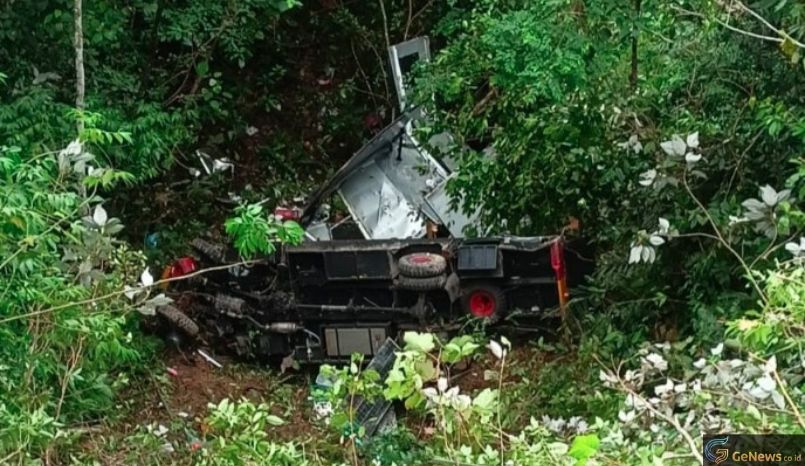 GeNews.co.id -Kecelakaaan yang mengerikan saat mobil Brimob melintas di kawasan Tebing Batu Manula, perbatasan Lampung-Bengkulu, pada hari minggu siang, 23 November 2025. Diduga rem kendaraan bermasalah, dan membuat mobil hilang kendali saat melaju di turunan yang cukup tajam dan berkelok.