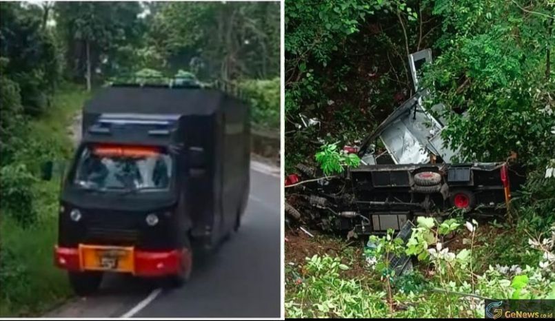 GeNews.co.id -Kecelakaaan yang mengerikan saat mobil Brimob melintas di kawasan Tebing Batu Manula, perbatasan Lampung-Bengkulu, pada hari minggu siang, 23 November 2025. Diduga rem kendaraan bermasalah, dan membuat mobil hilang kendali saat melaju di turunan yang cukup tajam dan berkelok.