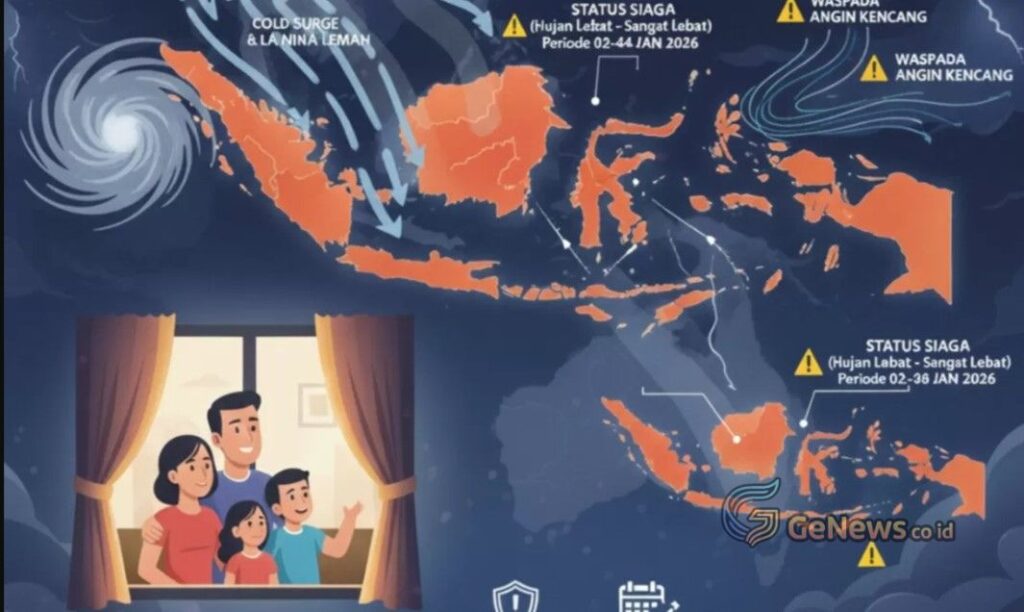 Genews.co.id Badan Meteorologi, Klimatologi, dan Geofisika (BMKG) mengeluarkan peringatan cuaca ekstrem yang berlaku secara nasional. Peringatan ini menyusul meningkatnya intensitas hujan lebat disertai angin kencang di berbagai wilayah Indonesia.