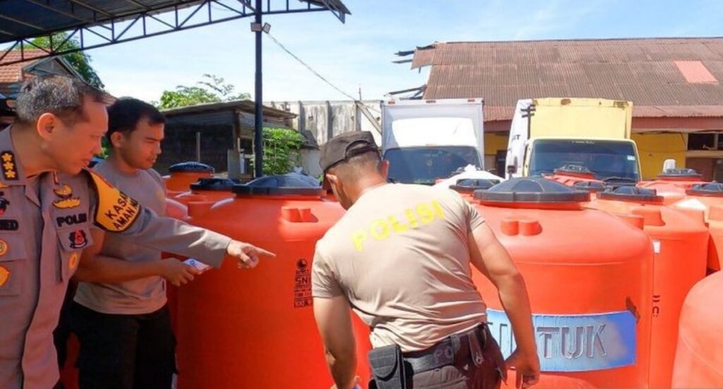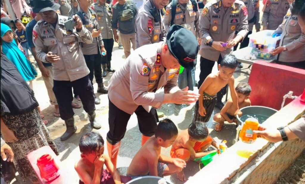 Selain air bersih, aparat kepolisian turut membantu distribusi bantuan logistik dan pengamanan wilayah terdampak.