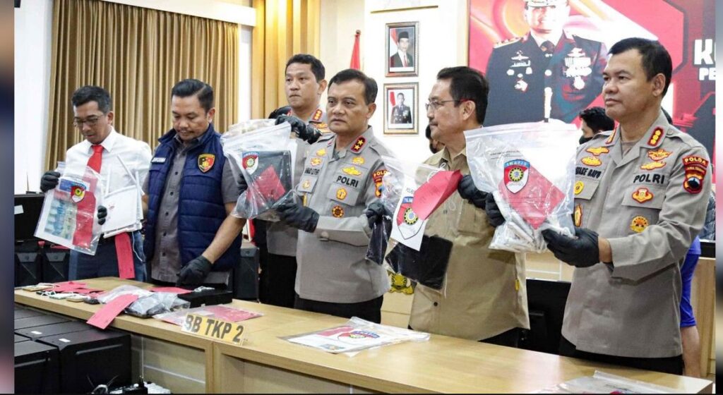 Dari hasil penggerebekan, polisi menyita puluhan barang bukti elektronik. Barang bukti tersebut meliputi perangkat komputer, ponsel, serta alat pendukung operasional lainnya.
