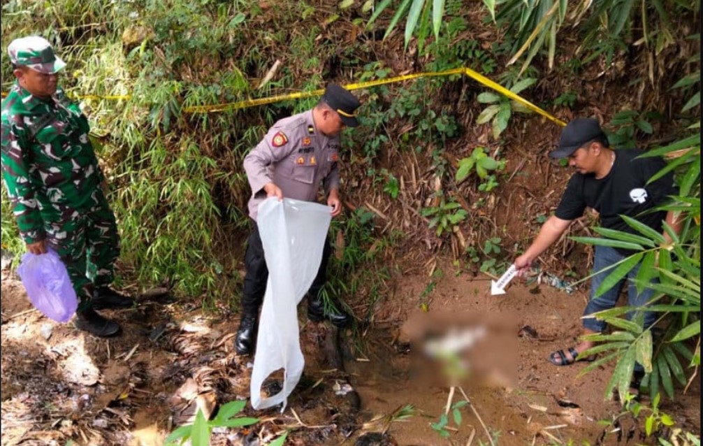 Polisi segera datang ke lokasi dan mengamankan area penemuan sebagai tempat kejadian perkara (TKP). Petugas juga menemukan sejumlah barang bukti di sekitar lokasi.