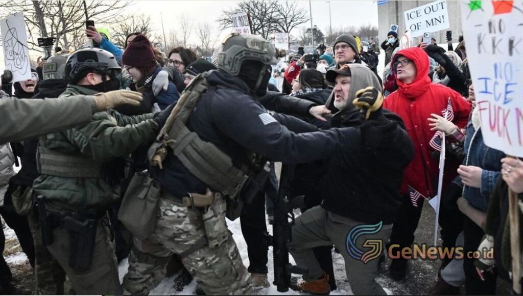 Genews.co.id Protes besar pecah di Minneapolis, Minnesota, Amerika Serikat, setelah terjadi penembakan fatal yang melibatkan agen Immigration and Customs Enforcement (ICE). Aksi unjuk rasa berlangsung sejak akhir pekan dan menarik perhatian luas karena menyoroti penggunaan kekuatan oleh aparat federal.