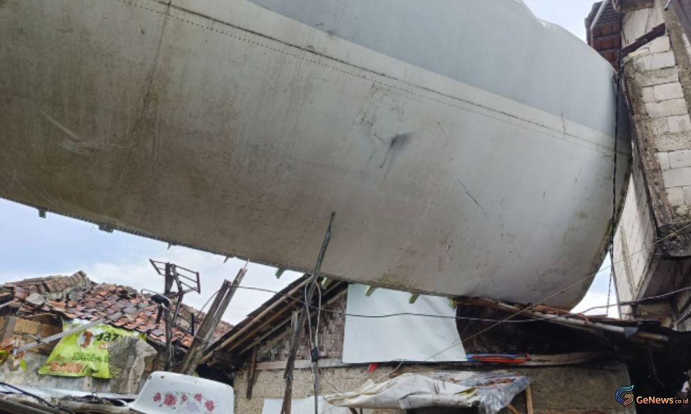 GeNews.co.id – Angin puting beliung yang datang dengan tiba-tiba membuat semua penduduk Desa Pondok Udik panik. Desa ini tepat berada di Kecamatan Kemang, Kabupaten Bogor, Jawa Barat. Kejadian mengejutkan ini terjadi pada Senin (29/12/2025) siang. Pasalnya terpaan angin kencang yang menerjang desa tersebut menghempaskan potongan sayap pesawat bekas yang tersimpan di gudang penampungan bangkai pesawat yang sering disebut warga sebagai “kuburan pesawat”.