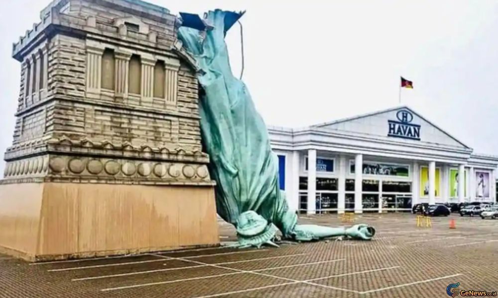 GeNews.co.id -Replika Patung Liberty yang menjadi simbol jaringan ritel Havana di Brazil roboh setelah diterjang angin kencang di Kota Guaiba. Kejadian ini terjadi pada hari senin 15 Desember 2025. Patung ikonik tersebut berdiri di area luar sebuah megastore Havana dan selama ini dikenal sebagai salah satu penanda kawasan tersebut.