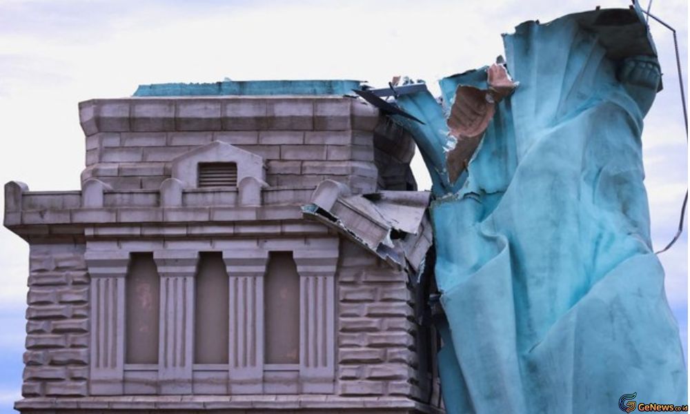Replika Patung Liberty Brasil Roboh Diterjang Angin Kencang