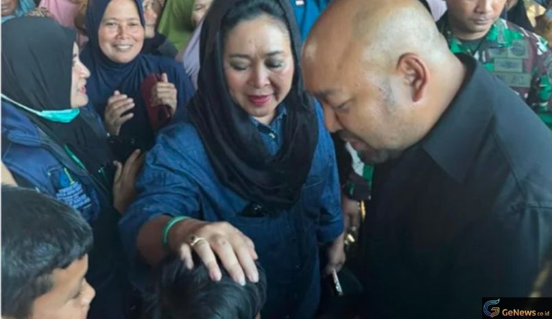 Genews.co.id -Di tengah guyuran air banjir yang masih meninggalkan luka memilukan,  Titiek Soeharto tiba di Pidie Jaya, Aceh, Sabtu, 29 November 2025. Wajahnya penuh empati saat berkumpul di kamp pengungsi, ditemani oleh Didit Prabowo dan Menhan Sjafrie Sjamsoeddin. Pengungsi yang kehilangan rumah langsung berbondong-bondong mendekat, mata berkaca-kaca menyambut kehadiran mereka yang terasa seperti pelukan hangat dari keluarga besar. Sumber;daerahsindonews.com