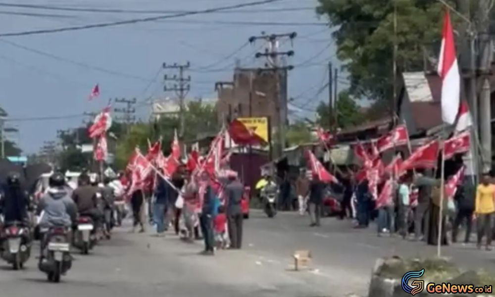 Puluhan peserta aksi tampak mengibarkan bendera Bintang Bulan di pinggir jalan sambil menyerukan kata “merdeka”. Ketegangan sempat terasa di lapangan, namun situasi dapat dikendalikan dan massa akhirnya membubarkan diri tanpa adanya benturan fisik.