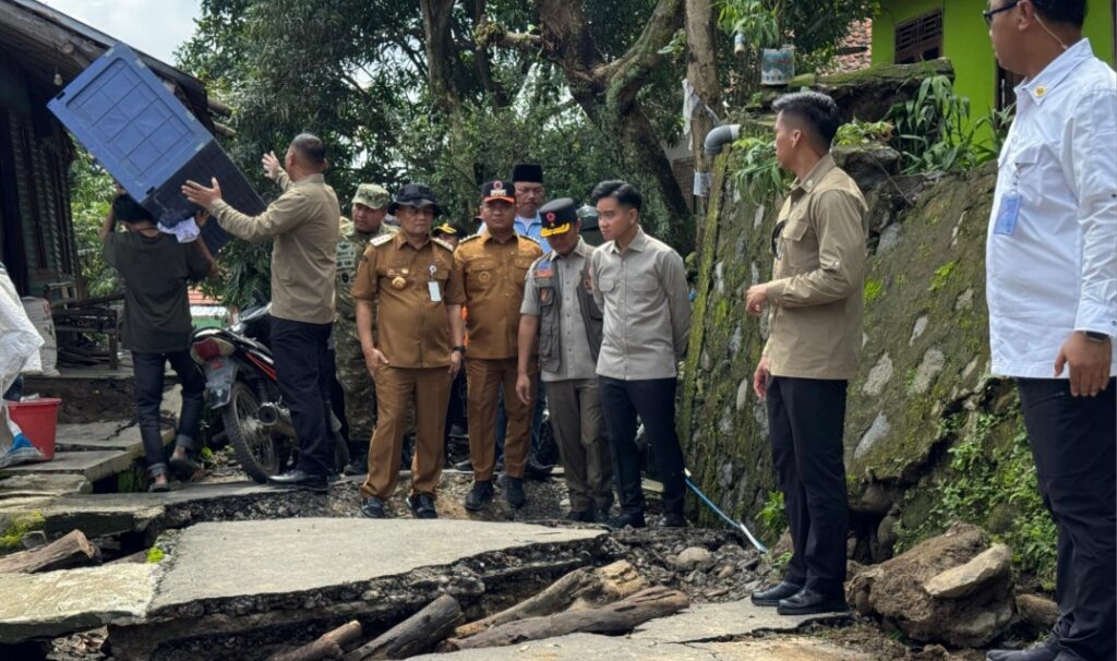 Wapres Gibran tiba di wilayah terdampak dengan pengawalan terbatas. Ia menyusuri jalan desa yang mengalami retak dan pergeseran tanah.